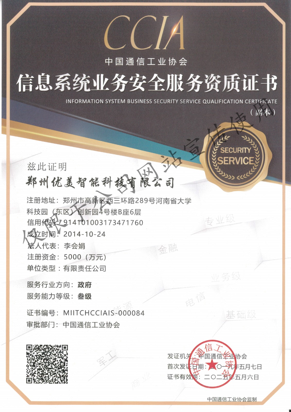 信息系統(tǒng)業(yè)務(wù)安全服務(wù)資質(zhì)證書