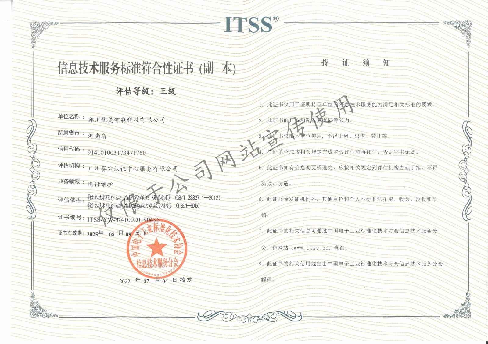 信息技術(shù)服務(wù)標(biāo)準(zhǔn)符合性證書