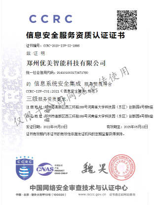 CCRC信息安全服務(wù)資質(zhì)認(rèn)證證書