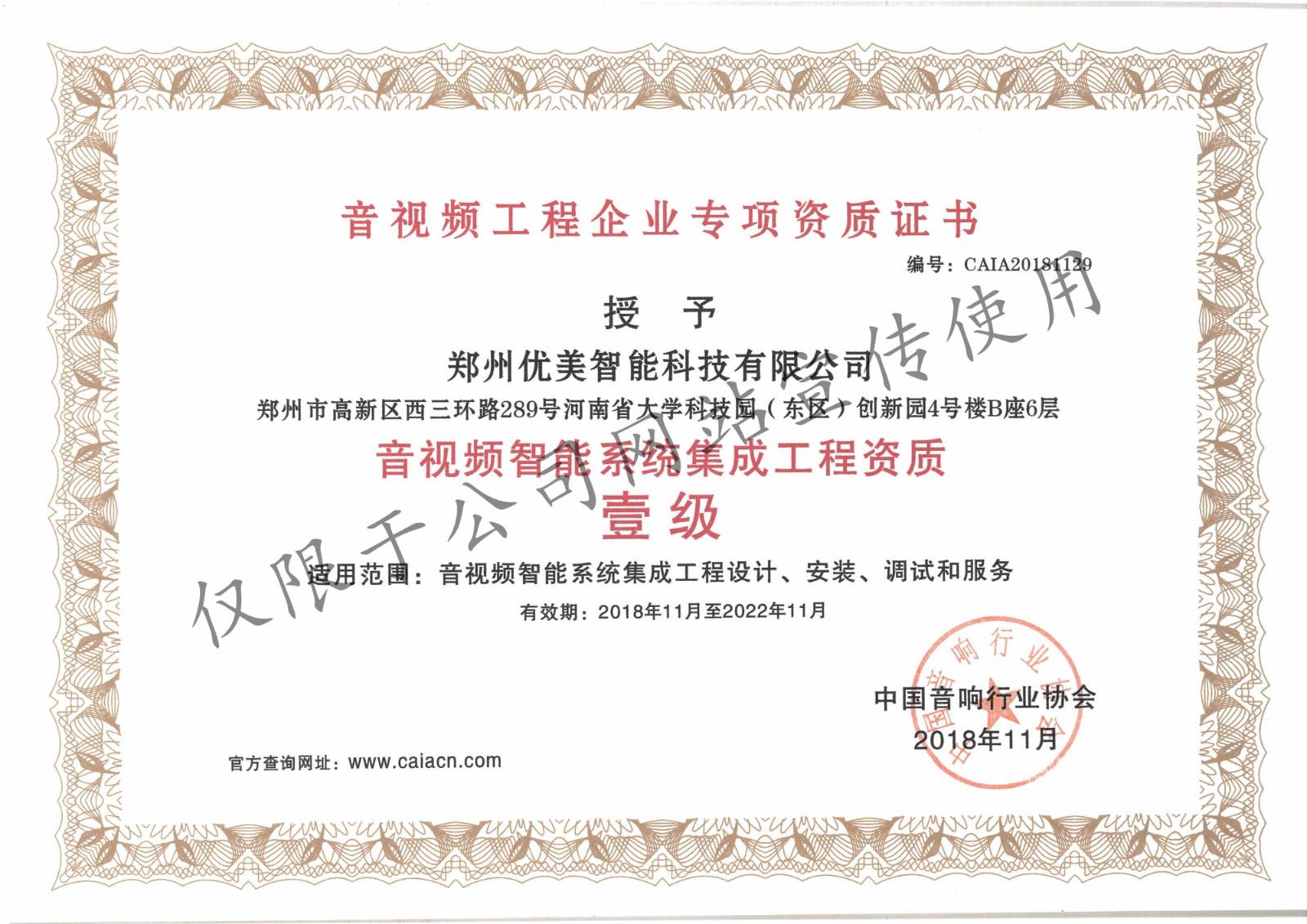 音視頻智能系統(tǒng)集成工程資質(zhì)--壹級資質(zhì)證書