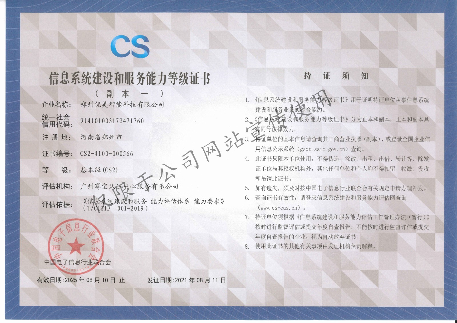 信息系統(tǒng)建設(shè)和服務(wù)能力等級證書